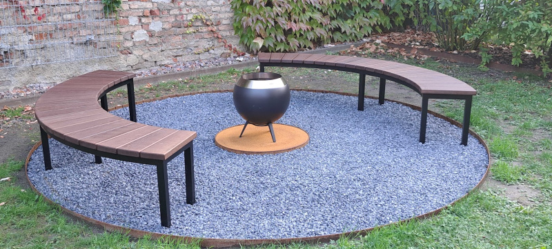 Anfang Juli 2025 haben wir für die Familie R. aus München eine halbrunde Gartenbank zur Platzierung um eine Feuerstelle gefertigt.